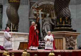 április 4. | 14:20A Pápai Ház szónoka nagypénteken: Az Isten szolgájának énekei tovább szólnak az emberi szívekbenNagypénteken, április 3-án 17 órakor kezdődött a Szent Péter-bazilikában Urunk szenvedésének ünneplése, melyet XIV. Leó pápa vezetett. A passió után a hagyománynak megfelelően a Pápai Ház szónoka, Roberto Pasolini kapucinus szerzetes mondott homíliát.