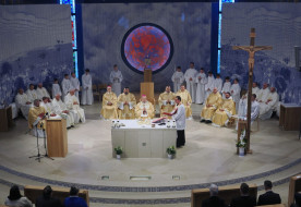 november 25. | 16:34„Az oltár köré gyűlve erősödjünk az égi szeretetben” – Felszentelték Nemesvámos új templomátNovember 23-án, Krisztus, a mindenség királya főünnepén Nemesvámosban húsz esztendő álma, imádsága, küzdelme és közösségi összefogása teljesedett be: Udvardy György veszprémi érsek felszentelte a Fatimai Szűz Mária tiszteletére épült új plébániatemplomot, amely a jövőben a... »