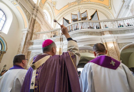március 25. | 12:34Udvardy György megáldotta a búcsúszentlászlói templom megújult orgonáját és a motoros zarándokokatNagyböjt ötödik vasárnapján, március 22-én ünnepi szentmise keretében áldotta meg Udvardy György veszprémi érsek a búcsúszentlászlói templom felújított orgonáját. A szertartás végén a főpásztor a templom előtti téren több száz motorost is áldásban részesített a biztonságos... »