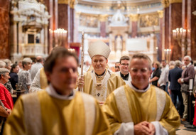 november 2. | 13:20Erdő Péter bíboros halottak napján: Halottainkat Isten szeretetére bízzukErdő Péter bíboros, prímás november 2-án, halottak napján szentmisét mutatott be a budapesti Szent István-bazilikában, amelyet a Duna Televízió élőben közvetített. Az ünnepi liturgián Mohos Gábor segédpüspök koncelebrált.