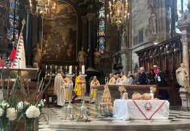 augusztus 23. | 17:32Tetteinkben és döntéseinkben nyilvánuljon meg a keresztény hit – Szent Istvánt ünnepelték BécsbenTöbb száz anyaországi és Kárpát-medencei magyar zarándok gyűlt össze augusztus 23-án a bécsi Stephansdomban, hogy együtt tisztelegjenek államalapító királyunk, Szent István emléke előtt. A szentmise főcelebránsa és szónoka Mohos Gábor esztergom-budapesti segédpüspök volt.