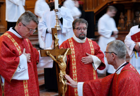 április 4. | 12:55Martos Levente Balázs püspök nagypénteken Esztergomban: A kereszt trónjáról szól hozzánk az irgalomAz idei nagypénteki szertartást – április 3-án – Martos Levente Balázs esztergom-budapesti segédpüspök vezette az esztergomi Nagyboldogasszony- és Szent Adalbert-főszékesegyházban. Az egyházi év legcsendesebb és legmegrendítőbb napján a hívő közösség együtt emlékezett meg... »