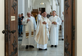 október 20. | 20:35Ne a megosztottság, gyűlölködés jellemezze az életünket – Megnyílt Ervin Gábor boldoggáavatási ügyeErdő Péter bíboros, prímás ünnepélyesen megnyitotta Ervin Gábor boldoggáavatási ügyének egyházmegyei szakaszát. Október 20-án a budapesti prímási palotában az eljárásban közreműködők esküt tettek. Szüksége van egész társadalmunknak azokra az életpéldákra, melyek arról... »