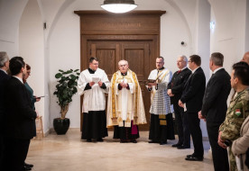 január 8. | 13:17Vízkeresztkor Berta Tibor püspök áldotta meg a miniszterelnöki hivatal szolgálati helyiségeitBerta Tibor dandártábornok, tábori püspök, Magyarország katonai ordináriusa végezte a miniszterelnöki hivatalban a vízkereszt napján szokásos házmegáldás szertartását január 6-án.