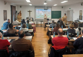 február 18. | 12:15Az „Öt pont” szemléltető módszerről tartottak kateketikai képzést MáriaradnánFebruár 13–14-én a temesvári egyházmegyében tevékenykedő papok, hittanárok és katekéták számára szerveztek szakmai továbbképzést a máriaradnai kolostorban, számos hitoktatással kapcsolatos témát és kérdést tárgyalva.