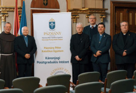 március 27. | 13:15Szerzetesjogi konferenciát tartottak a PPKE Kánonjogi Posztgraduális IntézetébenA Pázmány Péter Katolikus Egyetem (PPKE) Kánonjogi Posztgraduális Intézete (KJPI) és a Magyar Kánonjogi Társaság március 23-án konferenciát tartott A szerzetesjog kihívásai a mai társadalomban címmel.