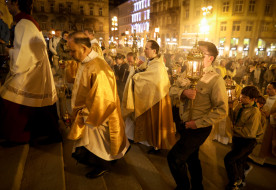 április 4. | 23:16Legyünk Isten szeretetének jó illatú virágai a sebzett világban – Húsvét vigíliája BudapestenÁprilis 4-én, húsvét vigíliáján a budapesti Szent István-bazilikában Mohos Gábor esztergom-budapesti segédpüspök, általános helynök, a bazilika plébánosa mutatott be ünnepi szentmisét. Koncelebrált Kovács Zoltán plébános helyettes, Kiss Géza Imre káplán és Richard Baafi ghánai... »