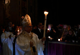 április 5. | 0:24XIV. Leó pápa húsvét vigíliáján: Legyünk lámpás a világ számáraÁprilis 4-én, nagyszombat éjjelén a Szent Péter-bazilikában a Szentatya vezette a húsvéti vigíliaszertartást, mely a bazilika előcsarnokában kezdődött a tűz megáldásával és a húsvéti gyertya előkészítésével. A meggyújtott húsvéti gyertyával körmenetben vonultak az oltárig,... »