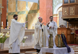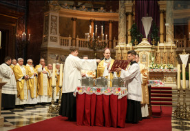 április 2. | 14:32Mennyire vagyunk fegyvertelenek kapcsolatainkban? – Krizmaszentelési mise a Szent István-bazilikábanÁprilis 2-án, nagycsütörtökön délelőtt 10 órakor a budapesti Szent István-bazilikában Mohos Gábor esztergom-budapesti segédpüspök, az Esztergom-Budapesti Főegyházmegye általános helynöke, a bazilika plébánosa főcelebrálásával mutatták be a krizmaszentelési szentmisét.