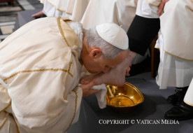 április 2. | 7:51XIV. Leó pápa tizenkét római áldozópap lábát mossa meg nagycsütörtökön a lateráni bazilikábanÁprilis 2-án, a nagycsütörtöki „in Coena Domini”, az utolsó vacsora emlékére ünnepelt szentmise keretében a Lateráni Keresztelő Szent János-bazilikában XIV. Leó pápa tizenkét római egyházmegyés pap lábát mossa meg – közülük tizenegyet ő maga szentelt fel 2025. május 31-én,... »