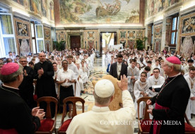 december 23. | 15:01Egyszerűség és alázat – Leó pápa a vatikáni munkatársakat és családjaikat fogadta karácsony előttLeó pápa december 22-én, hétfő délben találkozott a VI. Pál aulában a Vatikán alkalmazottaival és hozzátartozóikkal. A több ezer vatikáni munkatársnak, akik a különböző intézményekben dolgoznak, a Szentatya szívből megköszönte szolgálatukat, majd az idei betlehem különleges... »