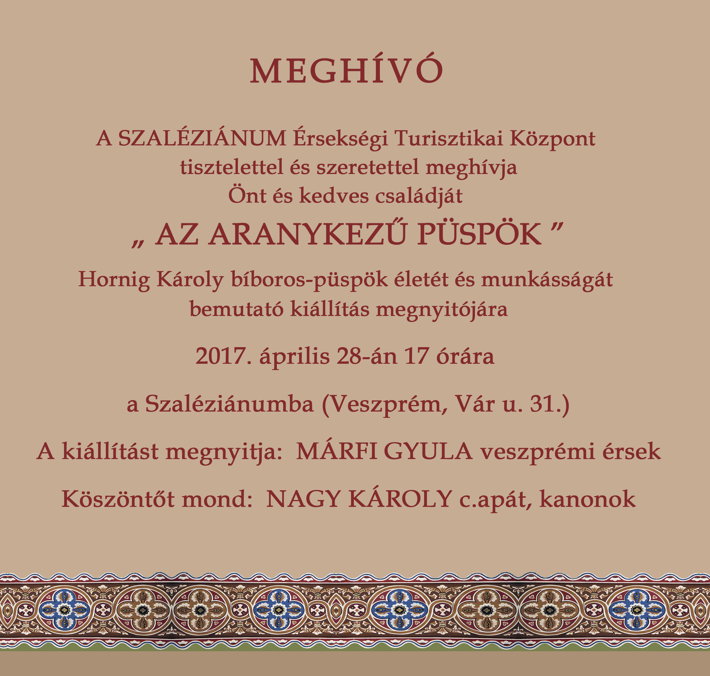 Program: Hornig Károly bíboros-püspök életét és munkásságát bemutató kiállítás