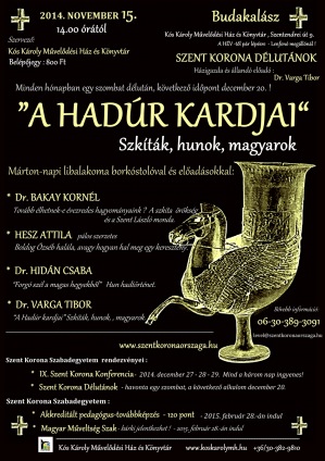 A Szent Korona Délutánok A hadúr kardjai című novemberi rendezvényére várják az érdeklődőket november 15-én, szombaton 14 órától.