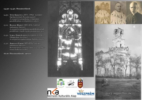 A Veszprémi Érseki és Főkáptalani Levéltár augusztus 26-án, szerdán 9 órától tartja a Háborús évek. A veszprémi egyházmegye a második világháborúban című egyháztörténeti konferenciát a Veszprémi Érseki Hittudományi Főiskola épületében (8200 Veszprém, Jutasi út 18/2.). Az eseményen köszöntőt mond Márfi Gyula veszprémi érsek.