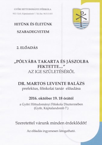 Helyszín: Győri Hittudományi Főiskola, díszterem (Káptalandomb 7.)