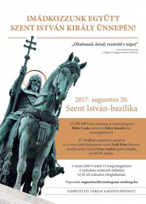 17:00 Szentmisét mutat be és a Szent Jobb körmenetet vezeti Erdő Péter bíboros, szentbeszédet mond Veres András győri megyéspüspök, az MKPK elnöke