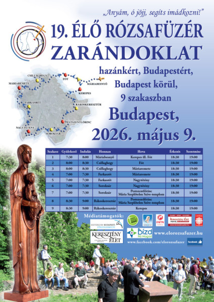 A zarándoklati végpontokon 19:00 órakor szentmise.