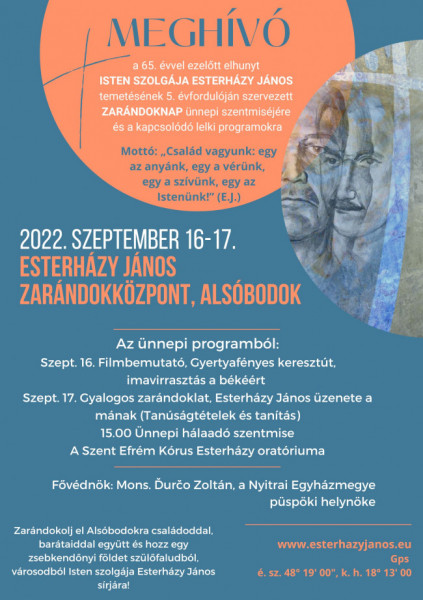11:00 Zarándokok érkezése, fogadása és az Esterházy János Zarándokközpont emlékhelyeinek megtekintése Alsóbodokon