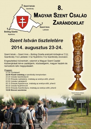 Öt kilométer sugarú körön belül az első Magyar Szent Család ereklyéje. Az egyetlen olyan királyi család a világon, melynek minden tagja szent.