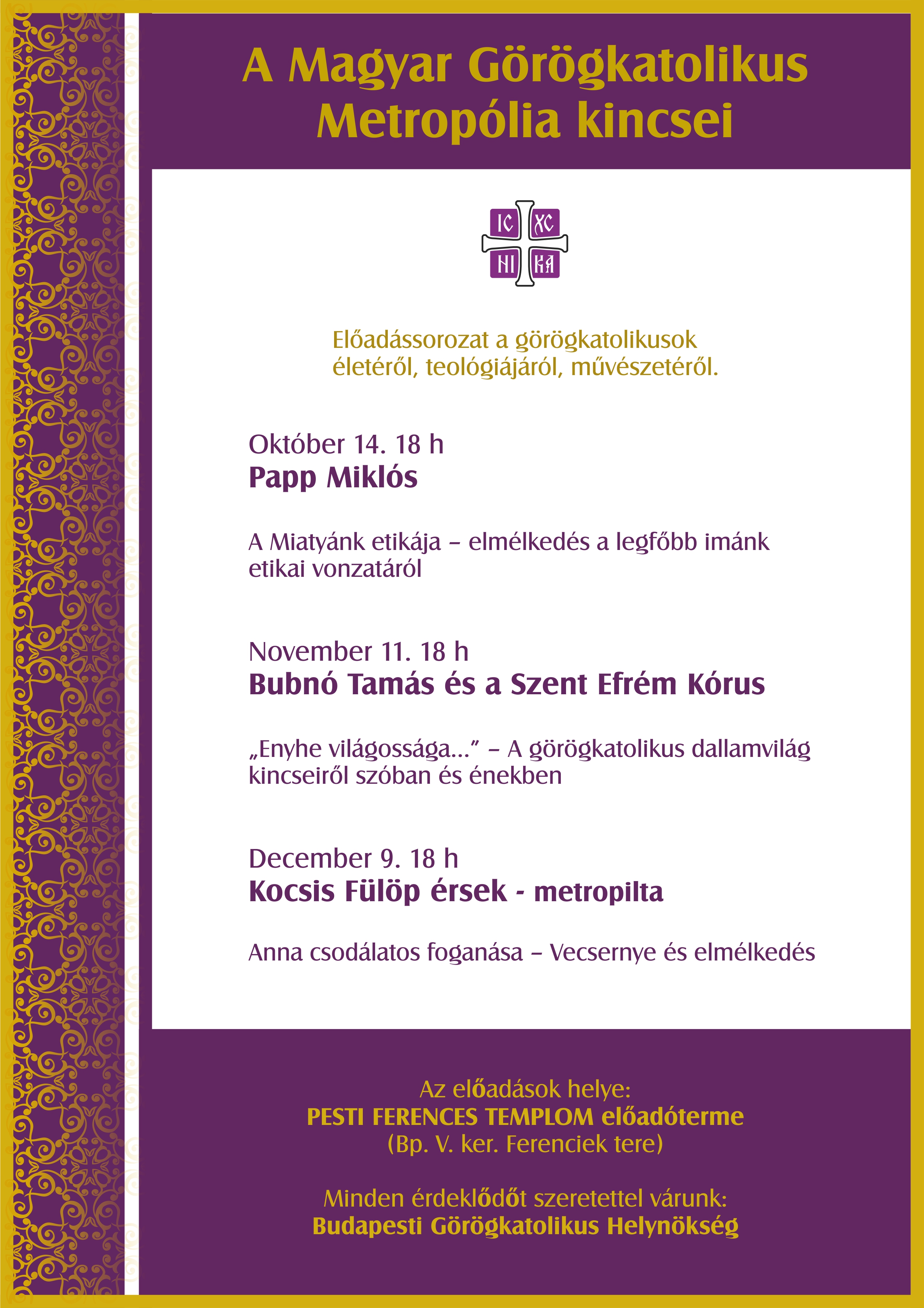 Minden érdeklődőt szeretettel vár a Budapesti Görögkatolikus Helynökség