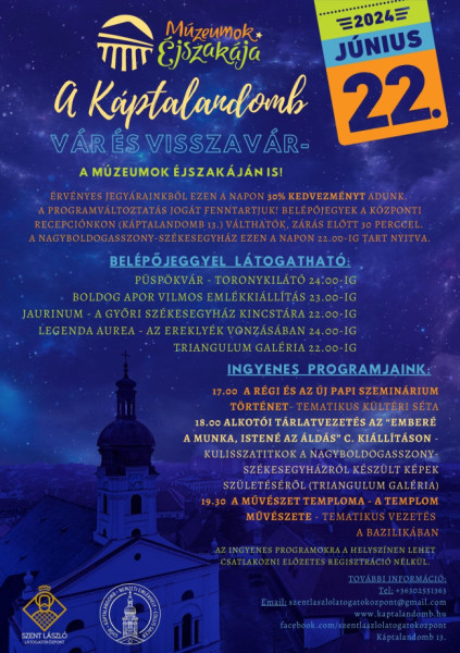 Belépőjegy váltható a Káptalandomb 13. szám alatti recepción, legkésőbb 21:30 óráig.