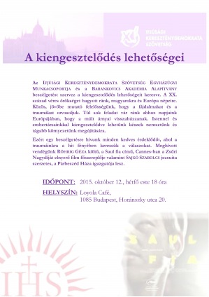 Az Ifjúsági Kereszténydemokrata Szövetség Egyházügyi Munkacsoportja és a Barankovics Akadémia Alapítvány beszélgetést szervez a kiengesztelődés lehetőségeit keresve.