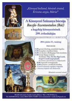 Június 15-én, vasárnap tartják a Könnyező Szűzanya búcsúját Bacsfa–Szentantalon.