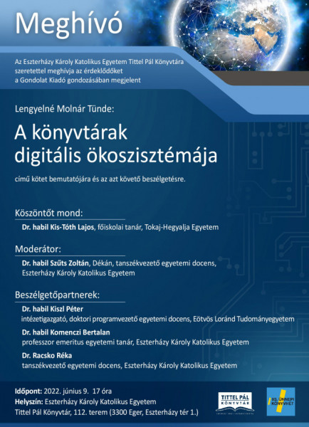Lengyelné Molnár Tünde: A könyvtárak digitális ökoszisztémája című kötet bemutatója és az azt követő beszélgetés