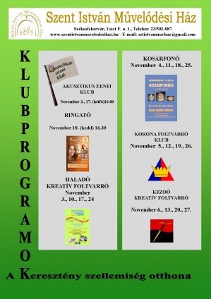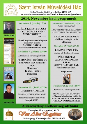 A székesfehérvári Szent István Művelődési Ház novemberi programjai