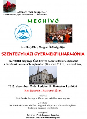 A Szentegyházi Gyermekfilharmónia az esztergomi Szent Anna ferences templomban december 22-én, kedden 19:30-tól tartja adventi körútjának utolsó előadását.