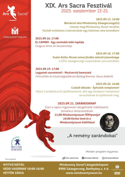 A XIX. Ars Sacra Fesztivál programjai a zalaegerszegi Mindszentyneumban
