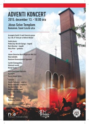 Adventi koncertet tartanak Komáromban a Jézus Szíve Templomban december 13-án 18 órától.