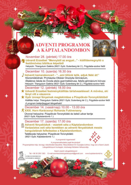 Az adventi programokról bővebb tájékoztatást a Püspökvár-Toronykilátó recepcióján