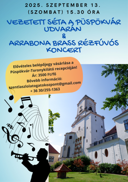 15:30 óra Vezetett séta a Püspökvár udvarán, majd a séta után az Arrabona Brass