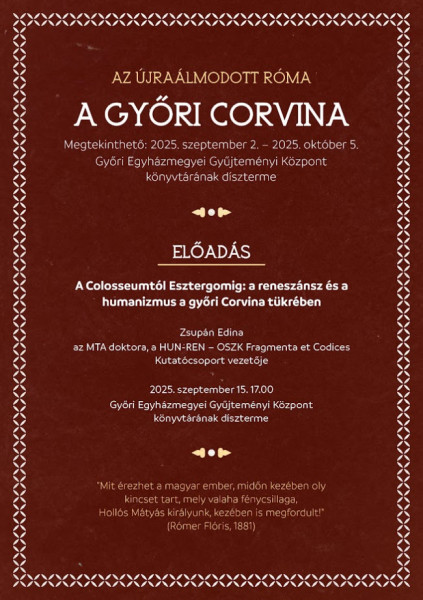 mely Hunyadi Mátyás európai hírű könyvtárából származó kódex a győri művelődés-