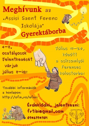Július 17. és 20. között a kolozsvári ferences szerzetesek ebben az évben is megrendezik az Assisi Szent Ferenc Iskolája elnevezésű tábort a csíksomlyói ferences kolostorban.