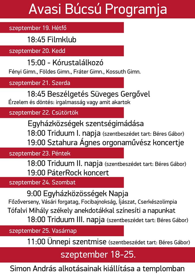 Az egész hétre szóló részletes program a csatolmányban megtekinthető.