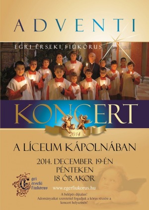 Az Egri Érseki Fiúkórus adventi koncertjére a Líceum kápolnájában kerül sor december 19-én, pénteken 18 órakor (3300 Eger, Eszterházy tér 1.)