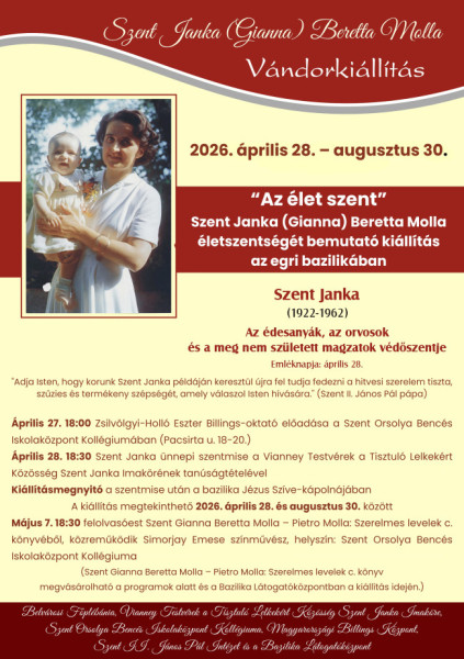 Felolvasóest Szent Gianna Beretta Molla – Pietro Molla: Szerelmes levelek című