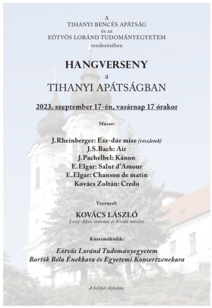 A Tihanyi Bencés Apátság és az Eötvös Loránd Tudományegyetem (ELTE) rendezésében 2023. szeptember 17-én, vasárnap 17 órakor a tihanyi apátságban ad hangversenyt az ELTE Bartók Béla Énekkara és Egyetemi Koncertzenekara.