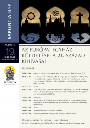 13.30–14.30 – Németh László SVD (Nagybecskerek püspöke, Szerbia): Az európai katolikus egyház felelőssége az iszlám és keleti vallások (pl. hinduizmus, buddhizmus stb.) európai elterjedésében