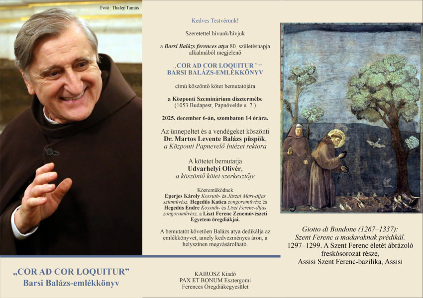 Barsi Balázs ferences atya 80. születésnapja alkalmából megjelenő „COR AD COR
