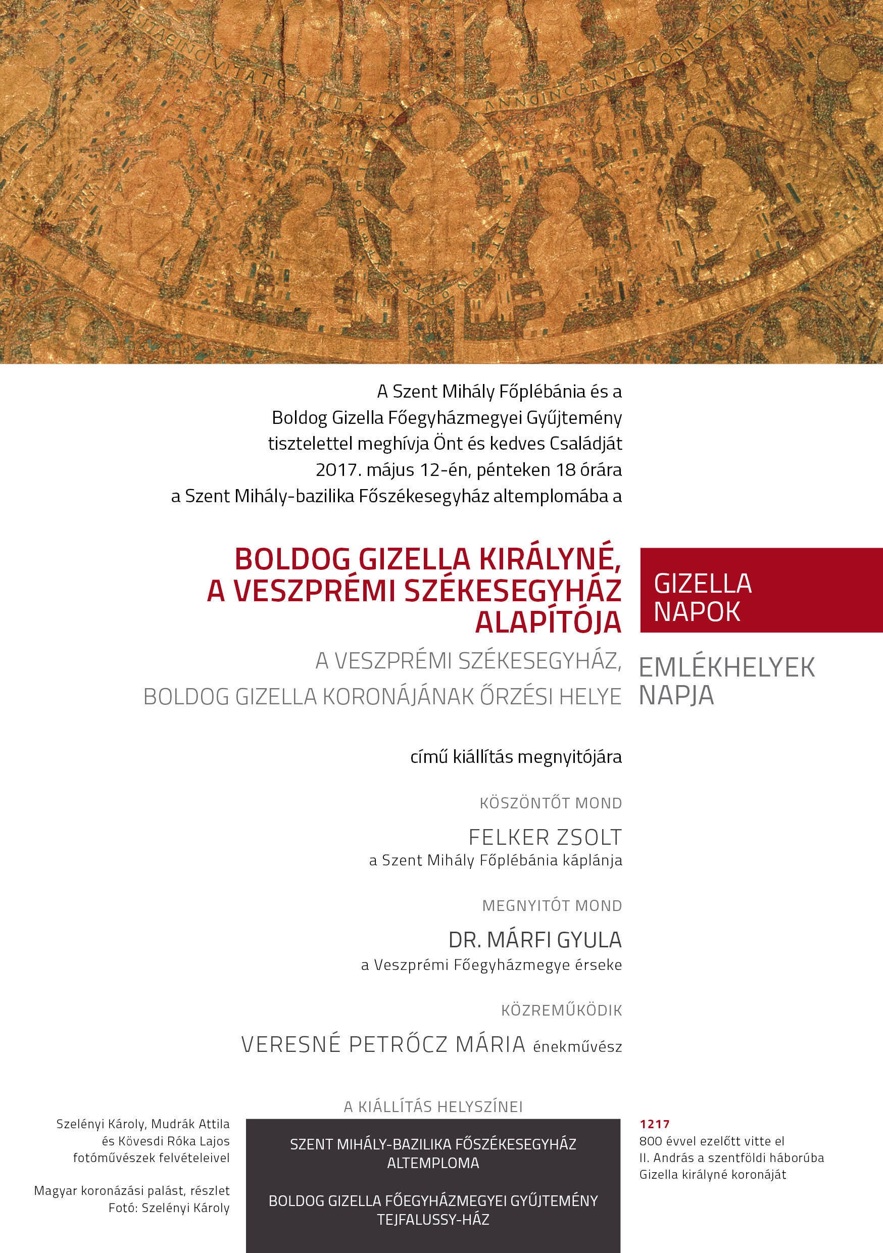 Program: Boldog Gizella királyné, a veszprémi székesegyház alapítója, a veszprémi székesegyház Boldog Gizella koronájának őrzési helye című kiállítás megnyitójára