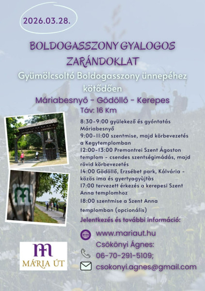 Boldogasszony gyalogos zarándoklat Gyümölcsoltó Boldogasszony ünnepéhez