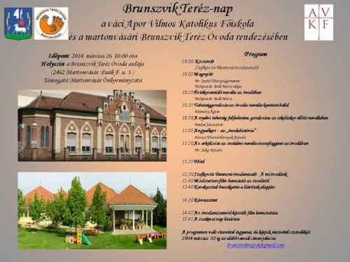 Március 26-án, szerdán tartja a váci Apor Vilmos Katolikus Főiskola és a martonvásári Brunszvik Teréz Óvoda óvodapedagógiai módszertani napját Brunszvik Teréz-nap címen.