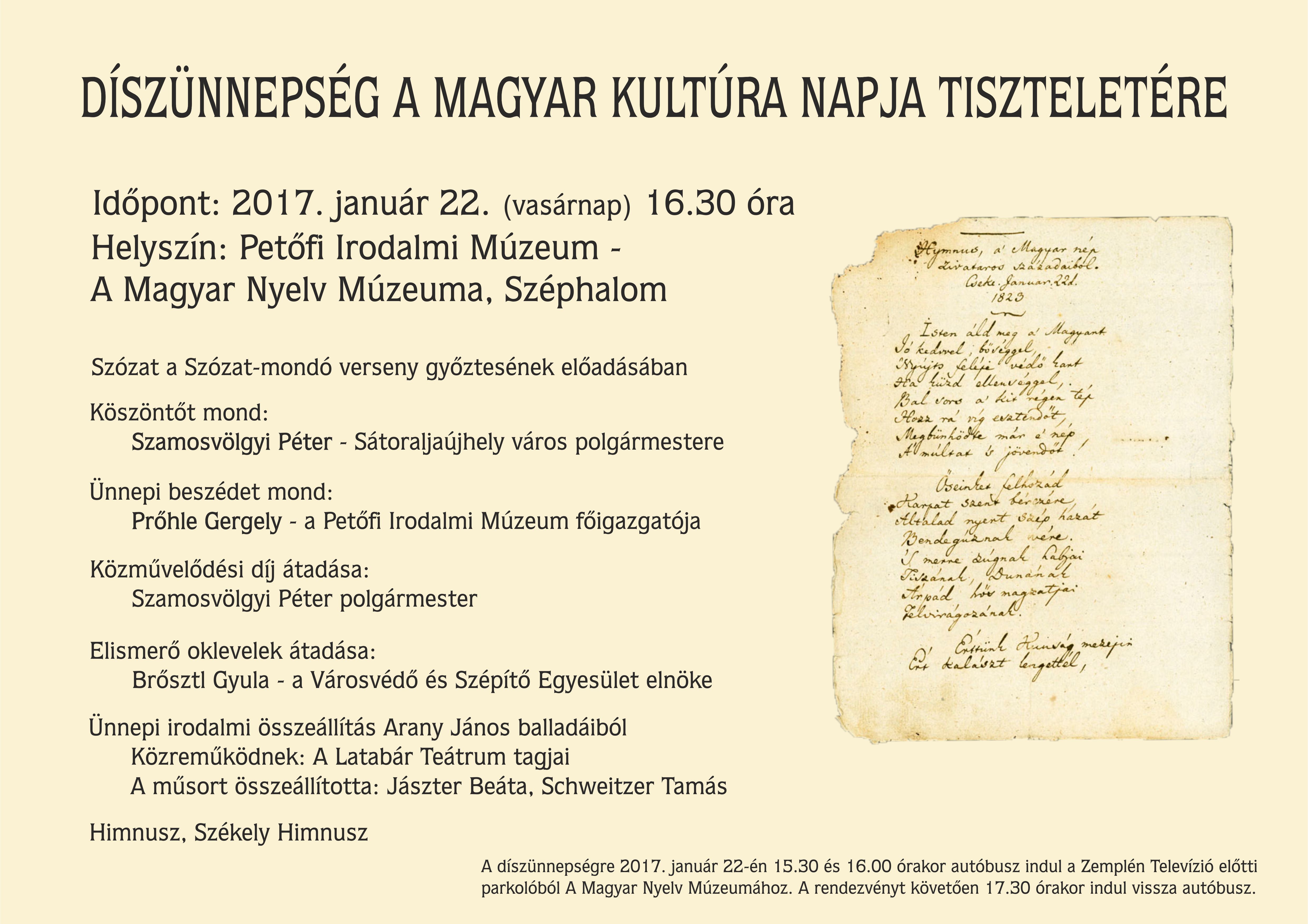 Mindenkit szeretettel várnak a Magyar Kultúra Napja alkalmából Széphalomba!