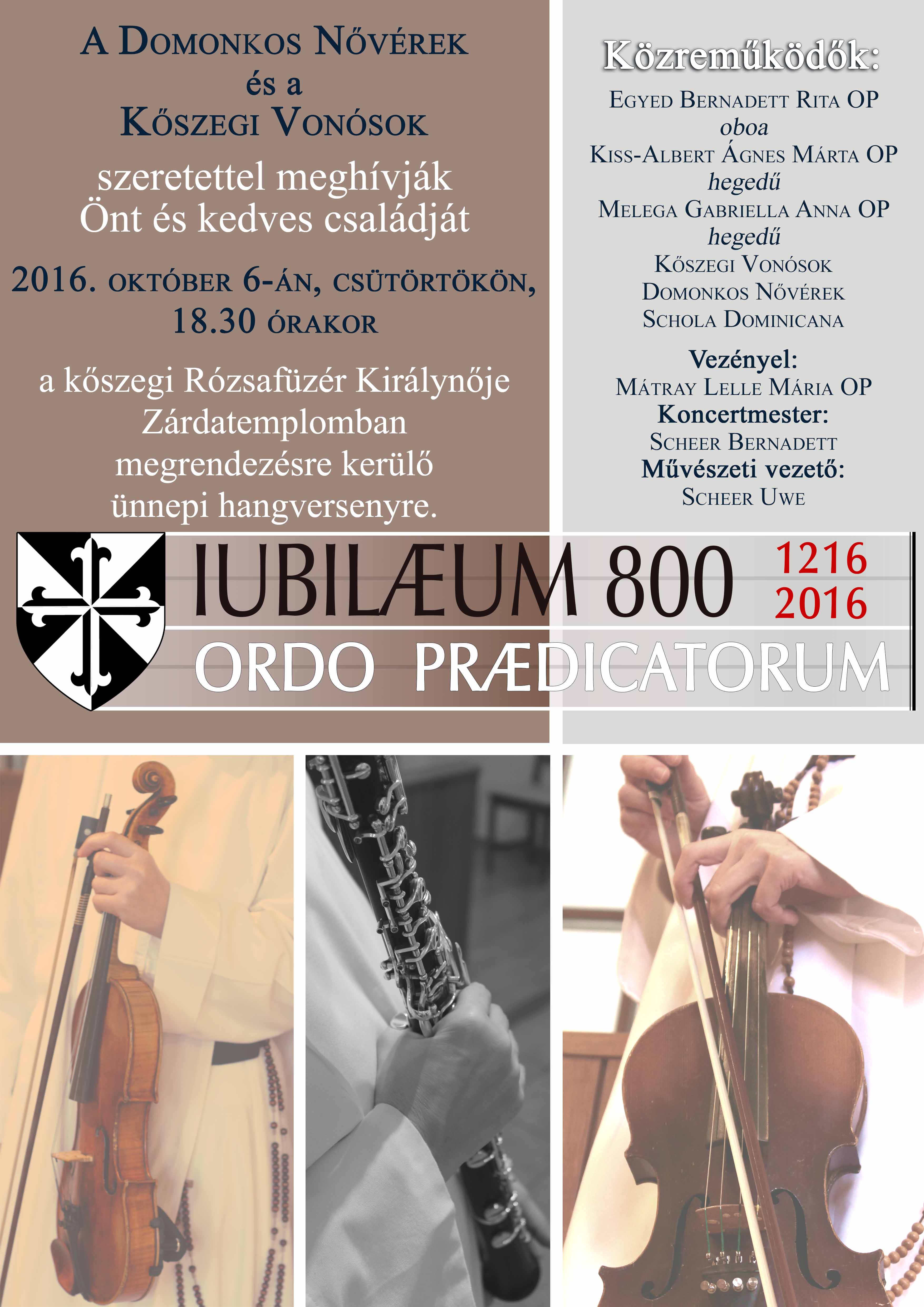 18:30 óra Ünnepi hangverseny, helyszín: Rózsafüzér Királynője Zárdatemplom (9730 Kőszeg, Gyöngyös u.2.)