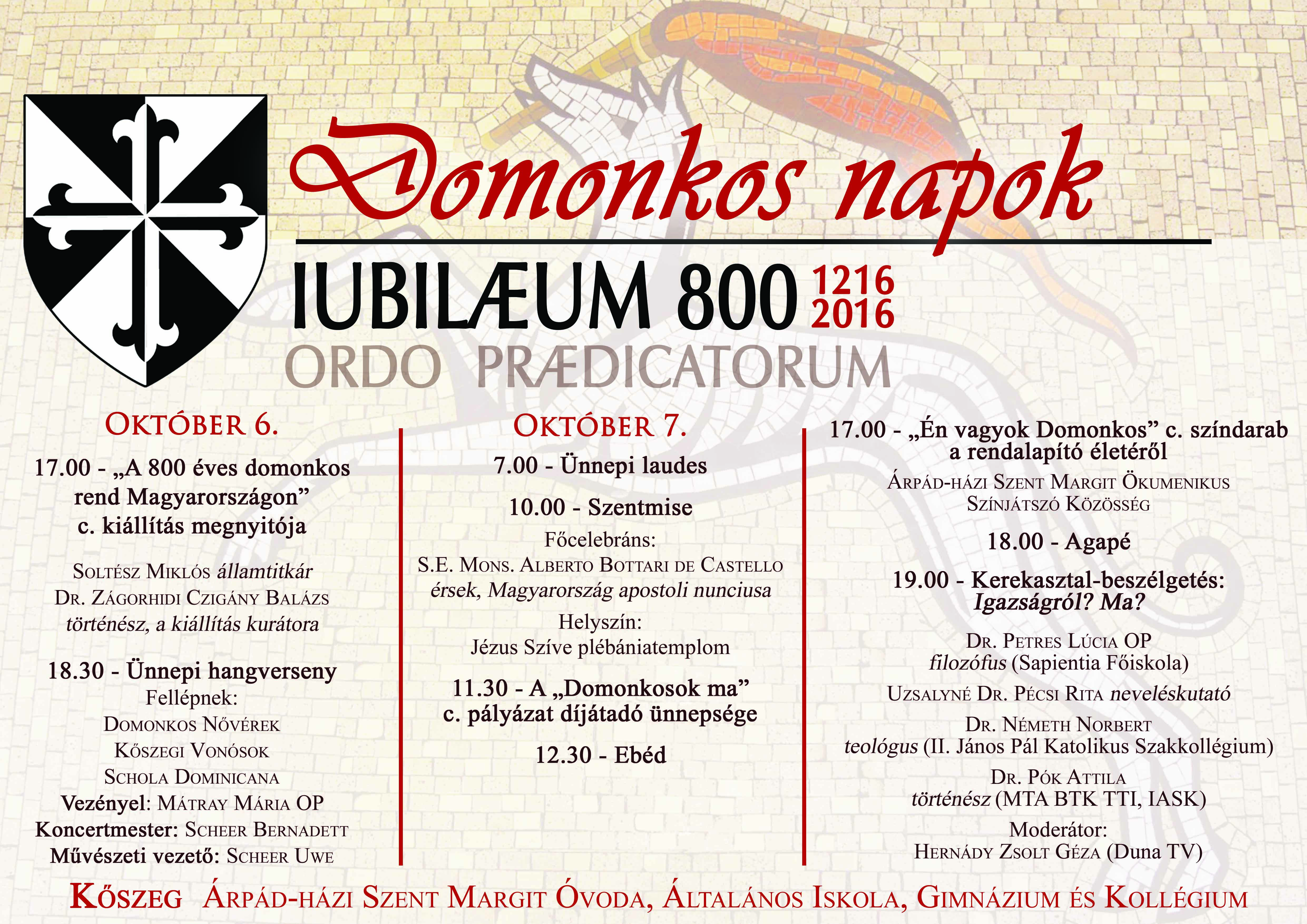 11:30 "A Domonkosok ma" című pályázat díjátadó ünnepsége