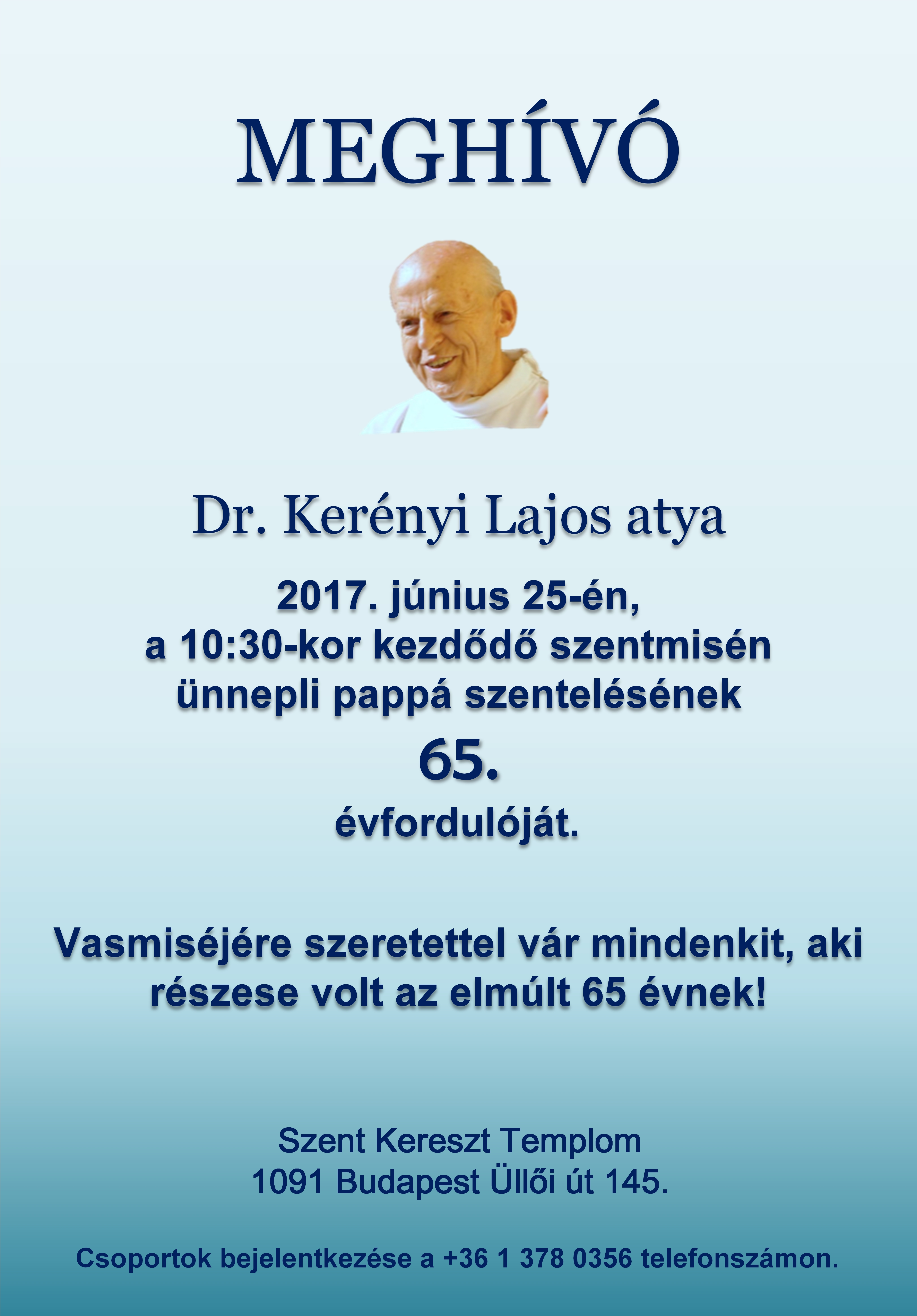 Program: Dr. Kerényi Lajos pappá szentelésének 65. évfordulóját ünnepli.