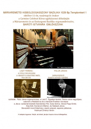 Baróti Istvánra, a Máriaremetei, s az Esztergomi Bazilika orgonaművészére, karnagyára emlékeznek október 11-én, vasárnap 16 órakor a máriaremetei bazilikában (1029 Budapest, Templomkert 1.).